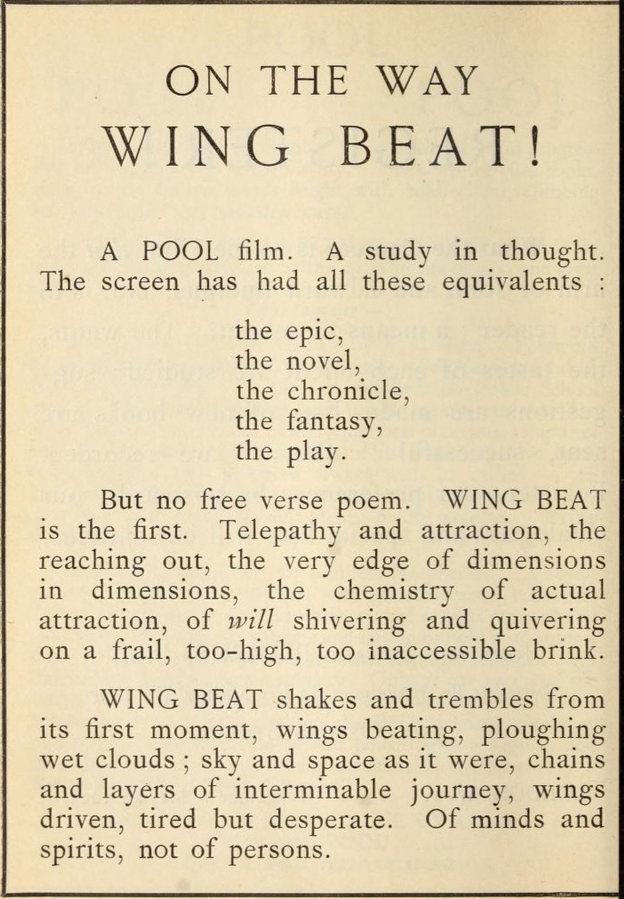 Wing Beat (A POOL film. A study in thought.)