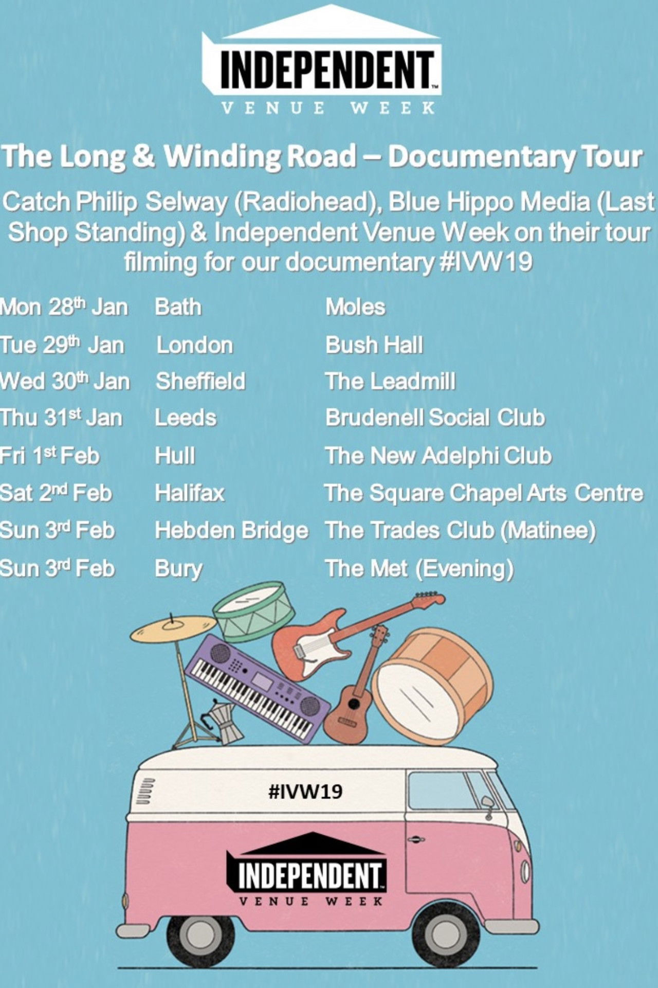 Long and Winding Road is a feature documentary filmed over 2 years, including the 2018 & 2019 Independent Venue Week celebrations. Featuring Philip Selway ( Radiohead), the film takes you on a very special journey into independent live music venues across the UK, meeting those who run, work & play in them.